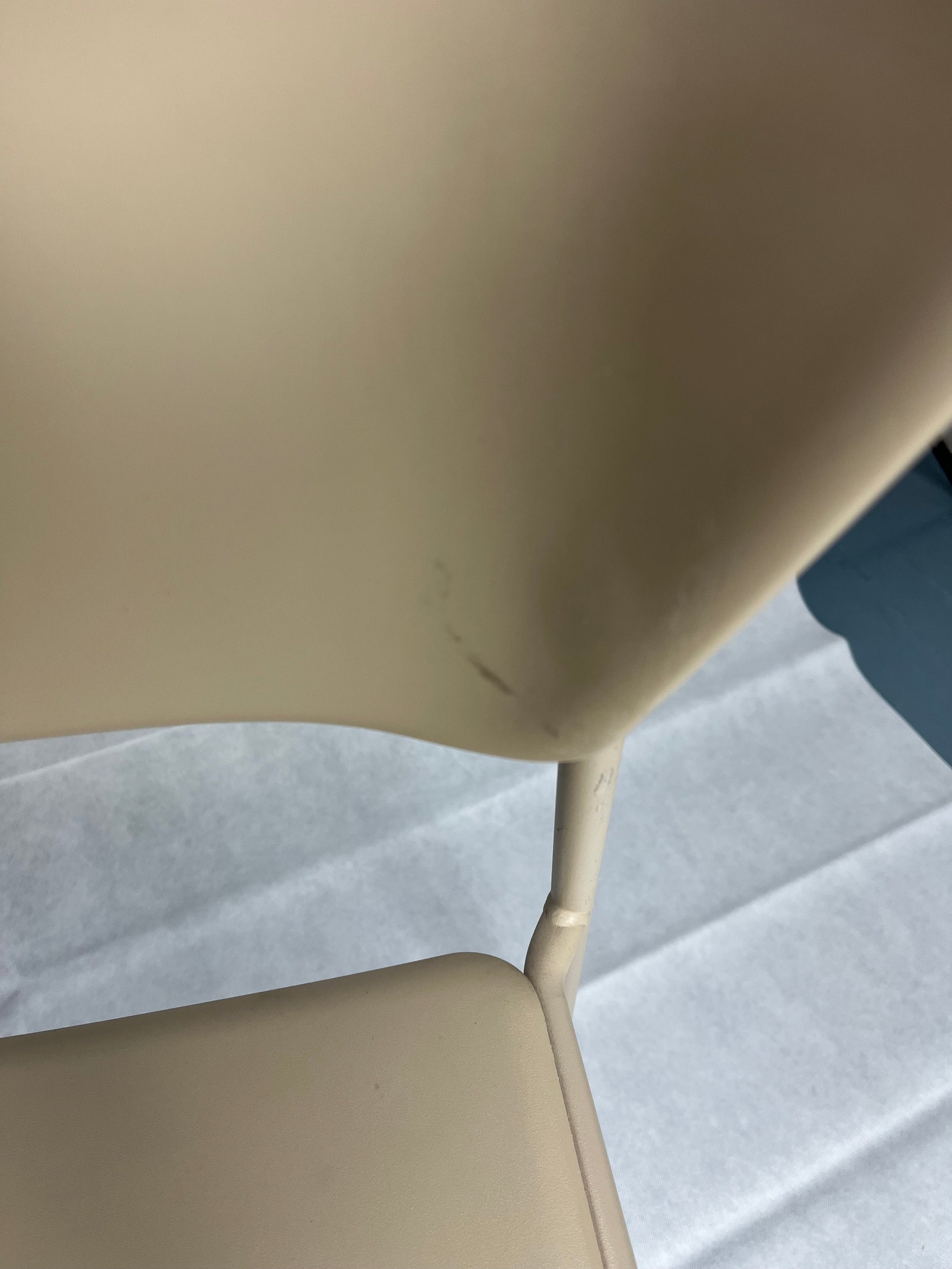 Tässä versiossa istuin ja selkänoja on valmistettu kestävästä ja helppohoitoisesta teknopolymeeristä – muoviseoksesta, joka säilyttää muotonsa ja värinsä myös kovassa käytössä. Beige väri on lämmin ja luonnollinen, ja se yhdistyy kauniisti tuolin metallirunkoon, joka tuo kokonaisuuteen ryhtiä ja kestävyyttä.
